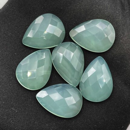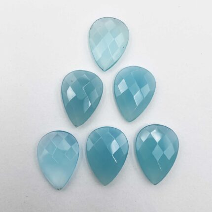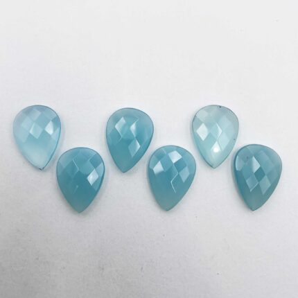 Natural Chalcedony Pear Checker Cut Loose Gemstone Lot 6 Pcs 16*22 MM 63 CT
