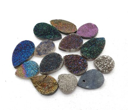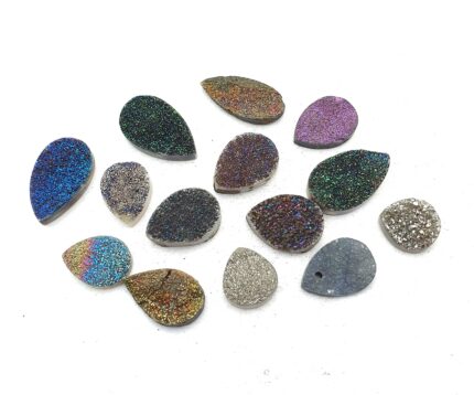 Natural Drusy Quartz Pear Cabochon Multi Color 15 Pcs 14-15*24-15 MM 97 CT